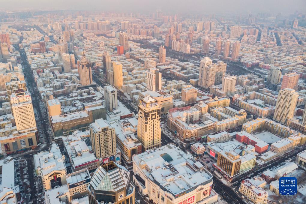 這是11月9日拍攝的哈爾濱主城區雪景(無(wú)人機照片)。