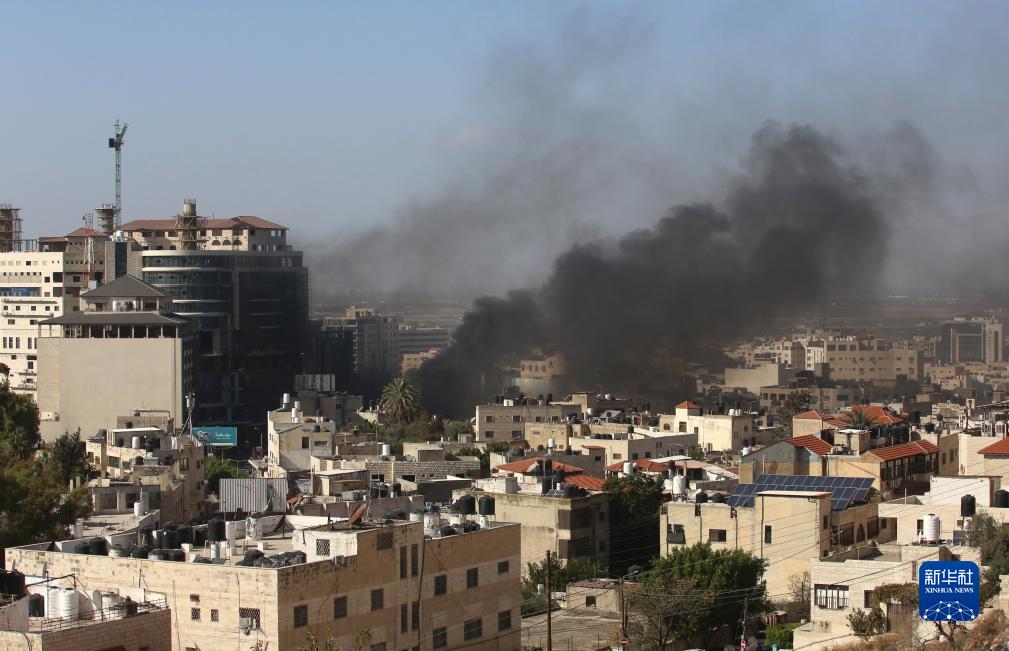 這是11月9日在約旦河西岸杰寧沖突現場(chǎng)升起的濃煙。