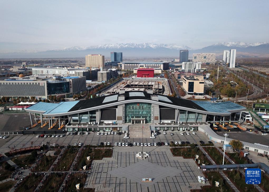 中哈霍爾果斯國際邊境合作中心(無(wú)人機照片,11月8日攝)。