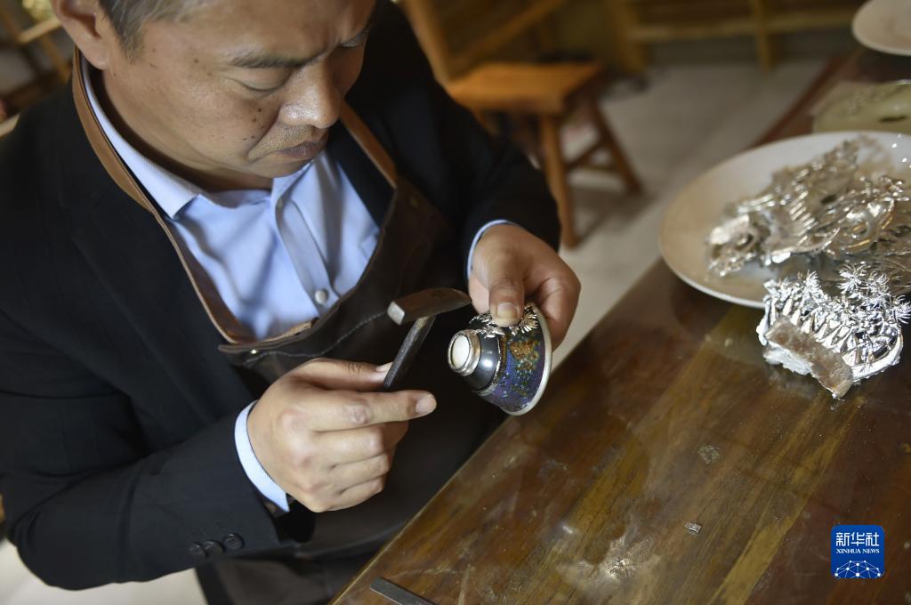 河南省郟縣金鑲玉制作技藝是國家級非物質(zhì)文化遺產(chǎn)代表性項目,歷史悠久,獨具文化內涵和藝術(shù)價(jià)值。據介紹,金鑲玉制作技藝原為對有瑕疵或破損的玉石、茶具等器物,用銅、錫等金屬絲片進(jìn)行掩飾、修補的鑲嵌工藝,后來(lái)逐步發(fā)展成為在陶瓷、紫砂等器物表面鑲嵌不同金屬(或合金)圖紋裝飾的獨特工藝。