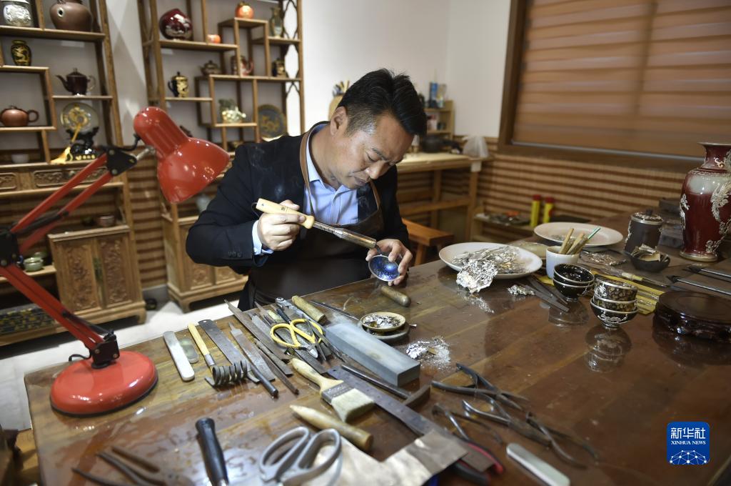 河南省郟縣金鑲玉制作技藝是國家級非物質(zhì)文化遺產(chǎn)代表性項目,歷史悠久,獨具文化內涵和藝術(shù)價(jià)值。據介紹,金鑲玉制作技藝原為對有瑕疵或破損的玉石、茶具等器物,用銅、錫等金屬絲片進(jìn)行掩飾、修補的鑲嵌工藝,后來(lái)逐步發(fā)展成為在陶瓷、紫砂等器物表面鑲嵌不同金屬(或合金)圖紋裝飾的獨特工藝。