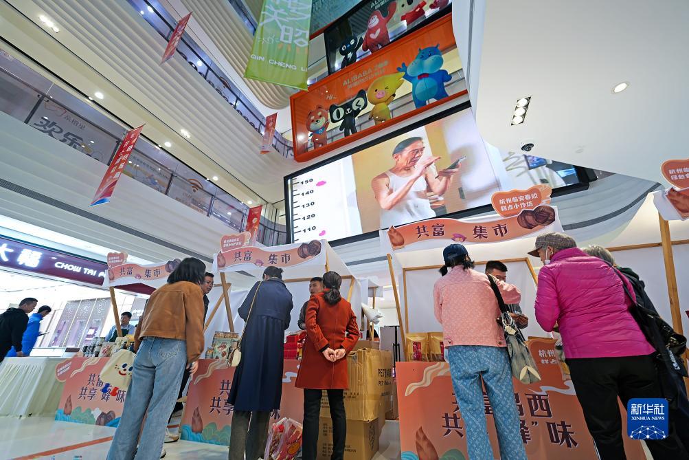 11月10日,杭州市民在“清涼峰味”共富品牌推介會(huì )上品嘗和選購特色農產(chǎn)品。