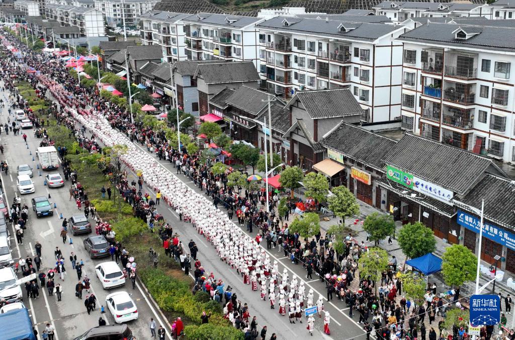 11月10日,群眾在蘆笙節上巡游(無(wú)人機照片)。