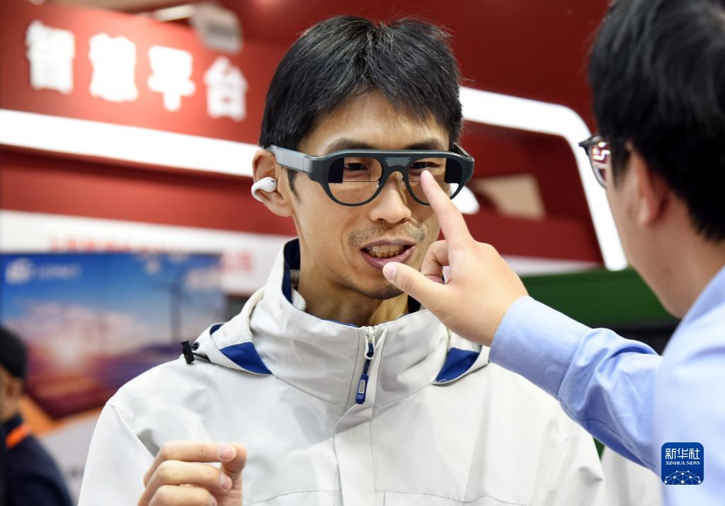 11月10日,參會(huì )者體驗國產(chǎn)“同聲字幕眼鏡”。