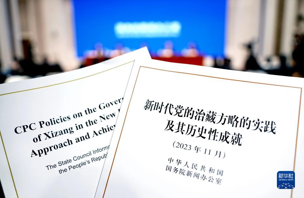 這是發(fā)布的中英文版《新時(shí)代黨的治藏方略的實(shí)踐及其歷史性成就》白皮書(shū)(11月10日攝)。