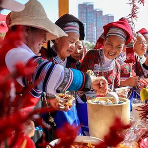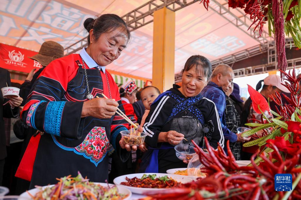 11月10日,游客在丘北辣椒節上品嘗美食。