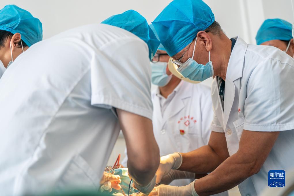 在畹町仁慈醫院,沈坤(右)和同事在給一名病人做手術(shù)(10月28日攝)。