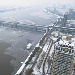 11月10日拍攝的開(kāi)始結冰的松花江哈爾濱段(無(wú)人機照片)。