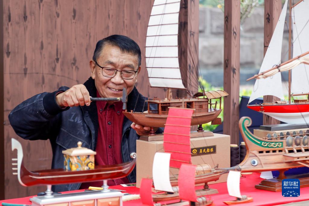 11月10日,非遺傳承人吳培在第六屆中國非物質(zhì)文化遺產(chǎn)傳統技藝大展上展示“吳氏船?!狈沁z傳統技藝。