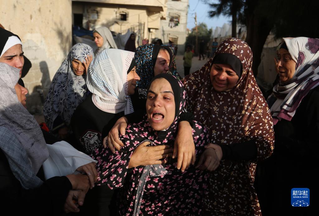 11月11日,在加沙地帶南部城市拉法,人們悼念在沖突中遇難的親人。