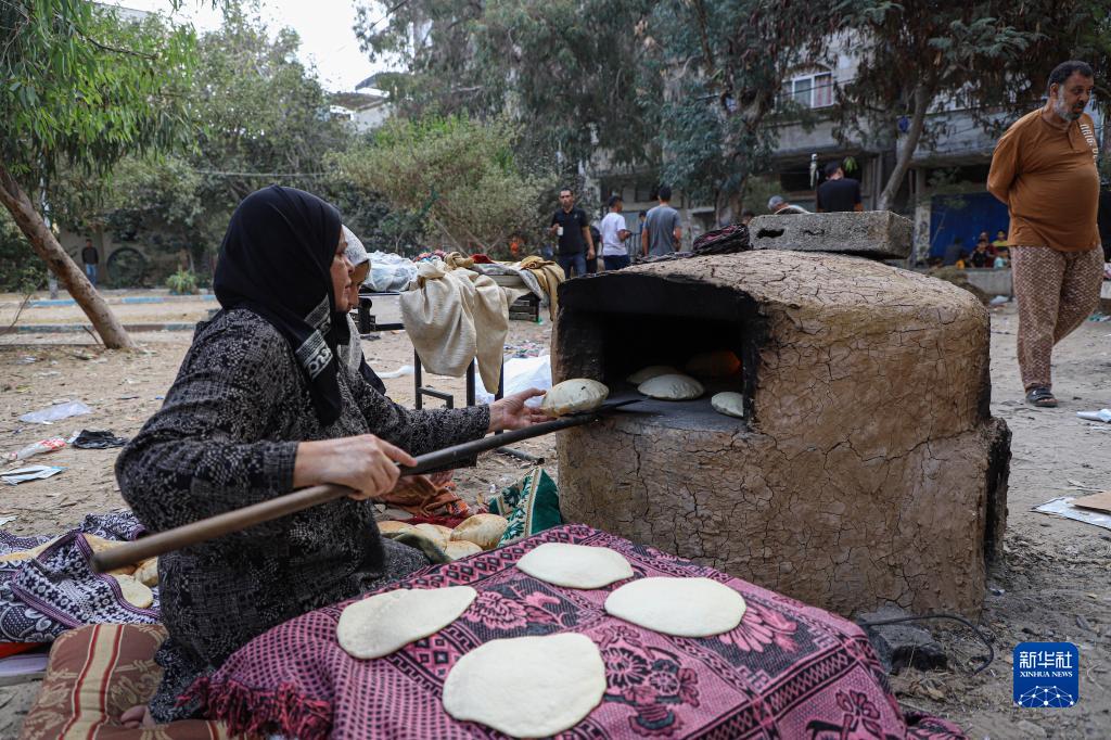 11月11日,在加沙地帶南部城市汗尤尼斯,志愿者為無(wú)家可歸的巴勒斯坦人制作大餅。
