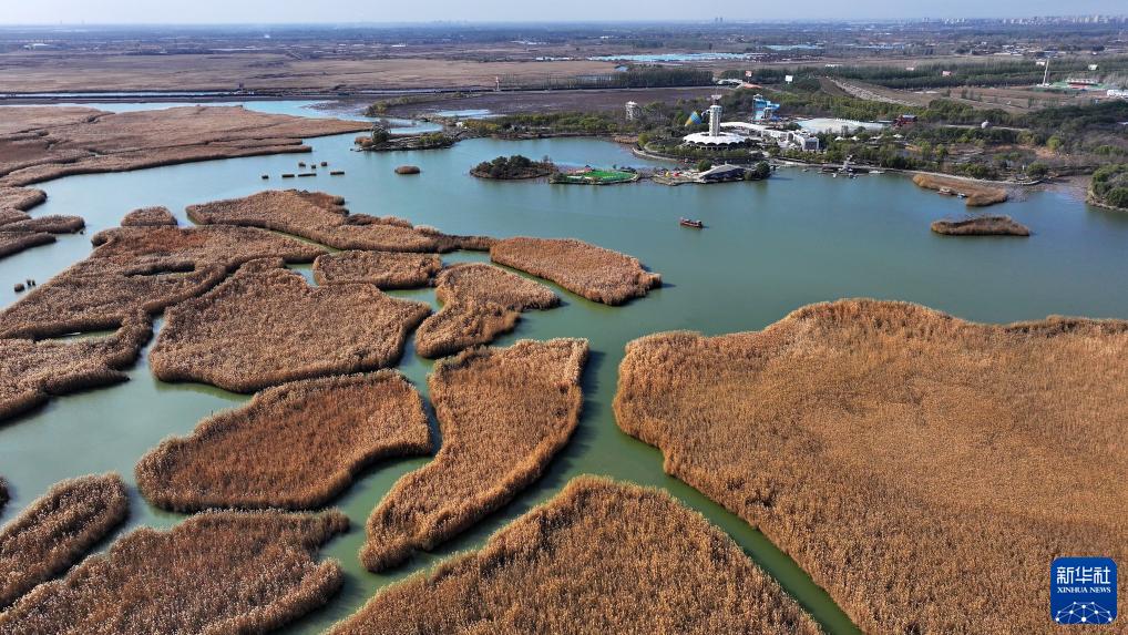鳴翠湖國家濕地公園初冬景色(無(wú)人機照片,11月10日攝)。