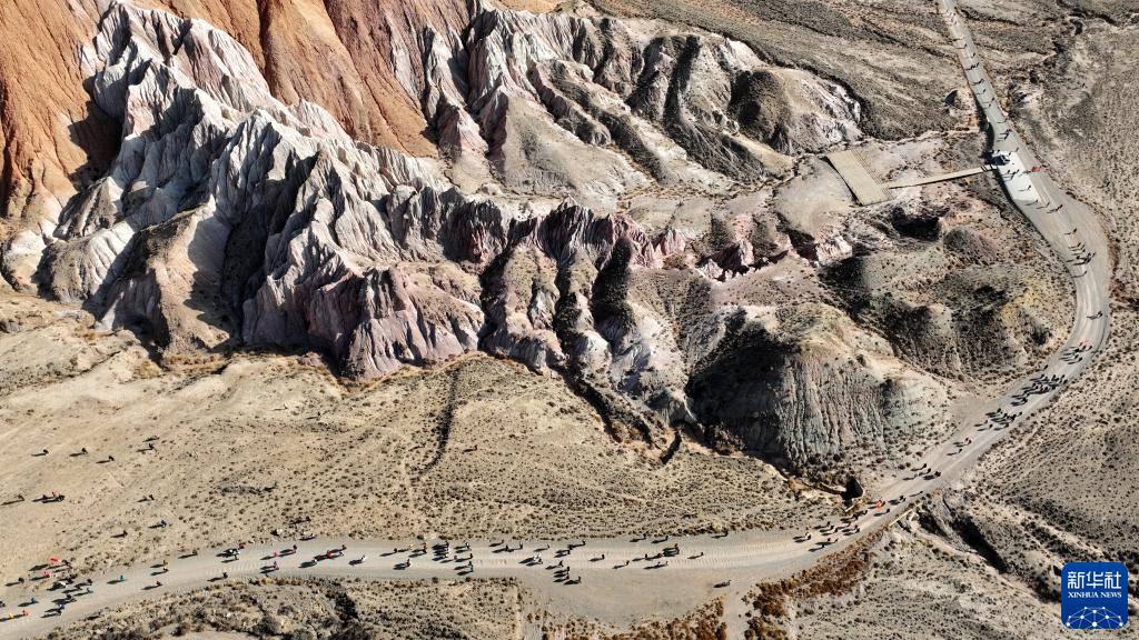 11月11日,人們在張掖外星谷星際主題地質(zhì)公園參加徒步活動(dòng)(無(wú)人機照片)。