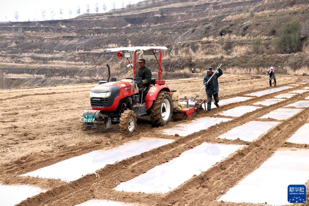 連日來(lái),在位于黃土高原的甘肅省平?jīng)鍪徐o寧縣,農戶(hù)抓住秋冬季節降水較多、土壤墑情較好、地面尚未封凍的有利時(shí)機,對耕地進(jìn)行覆膜作業(yè),為來(lái)年春播打下基礎。