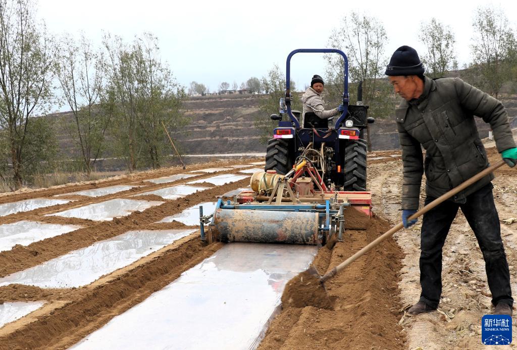 連日來(lái),在位于黃土高原的甘肅省平?jīng)鍪徐o寧縣,農戶(hù)抓住秋冬季節降水較多、土壤墑情較好、地面尚未封凍的有利時(shí)機,對耕地進(jìn)行覆膜作業(yè),為來(lái)年春播打下基礎。