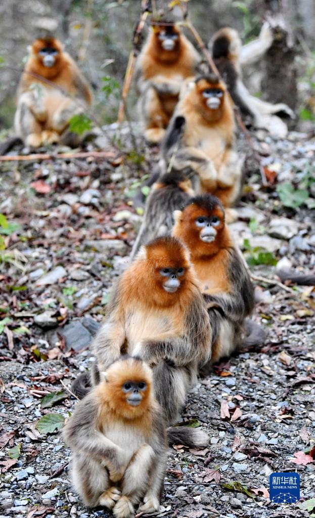 11月11日在四川白河國家級自然保護區拍攝的野生川金絲猴。