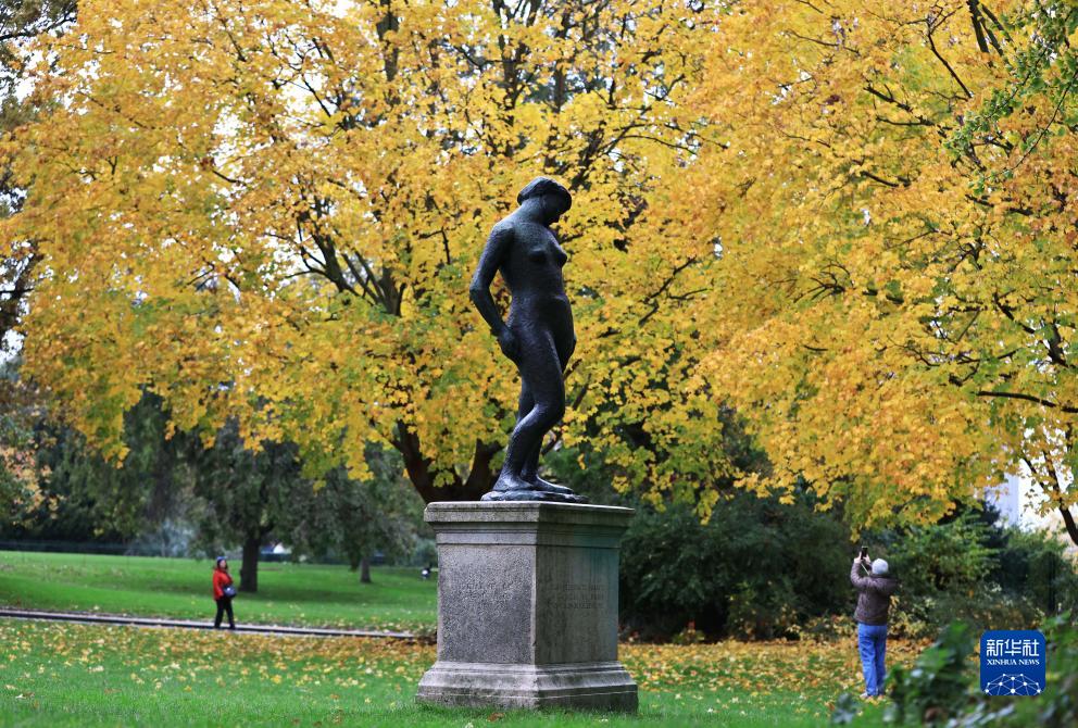 11月12日,人們在法國巴黎蒙蘇里公園欣賞秋色。