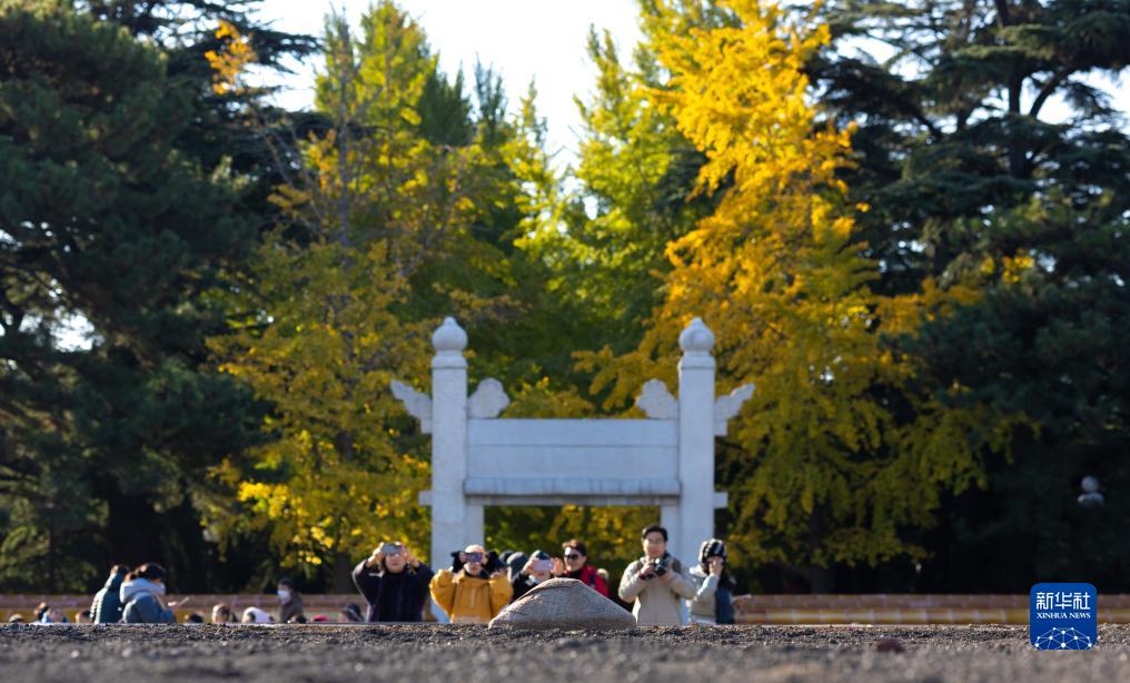 游客在北京中山公園拍攝社稷壇(11月7日攝)。社稷壇是皇帝祭祀土神和谷神的地方,也是皇權王土和國家收成的象征,1928年改名為中山公園。