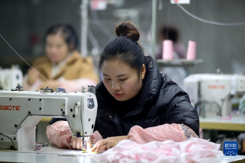 11月14日,工人在施秉縣一家服裝企業(yè)生產(chǎn)車(chē)間工作。