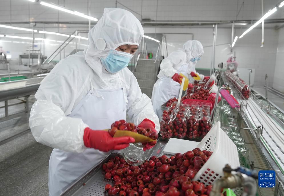 11月14日,工人在河北省遵化市一家食品企業(yè)的山楂罐頭生產(chǎn)車(chē)間工作。