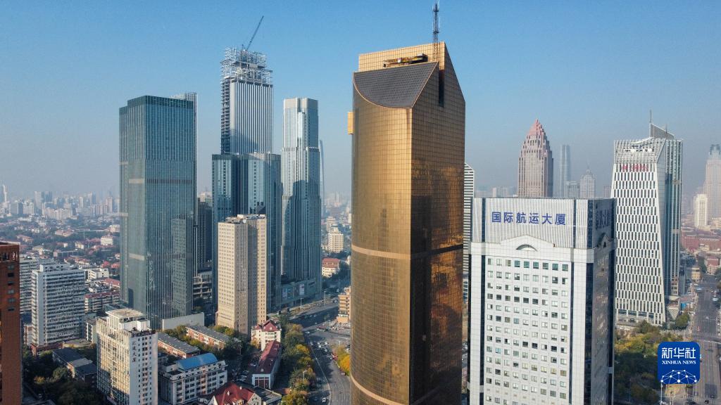 這是11月14日拍攝的位于天津小白樓中央商務(wù)區的天津國際航運大廈與多座商務(wù)樓宇(無(wú)人機照片)。