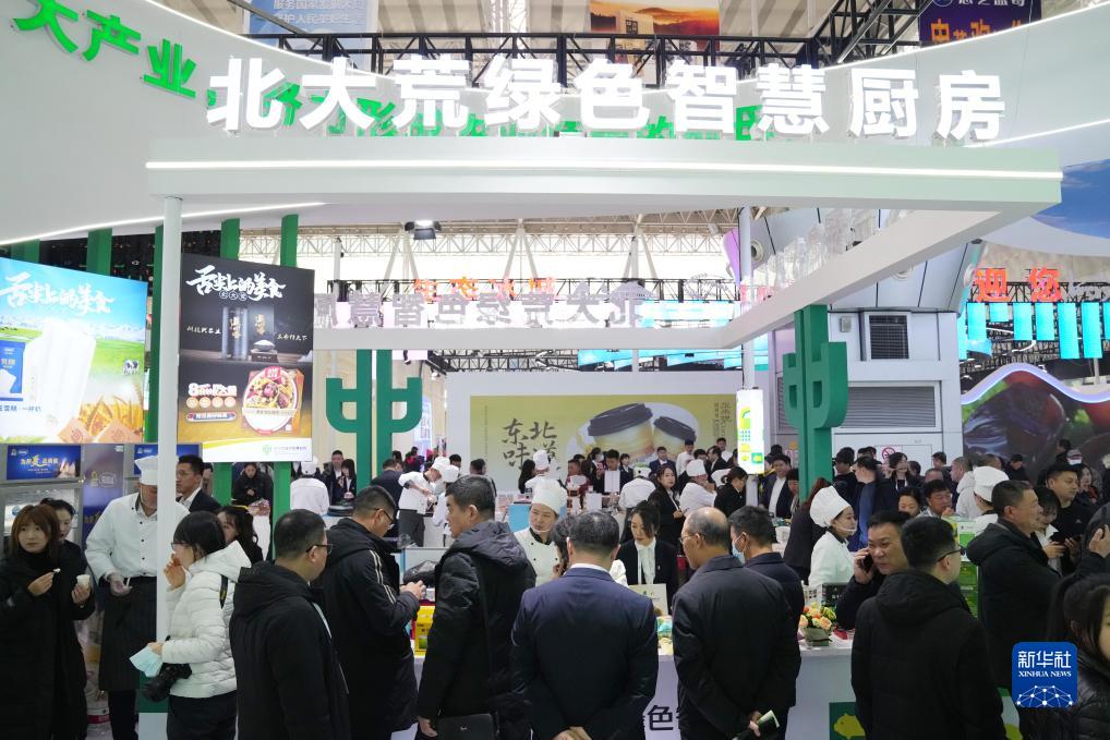 11月15日,在首屆中國(黑龍江)國際綠色食品和全國大豆產(chǎn)業(yè)博覽會(huì )的北大荒集團展區,參會(huì )者在品鑒食品。