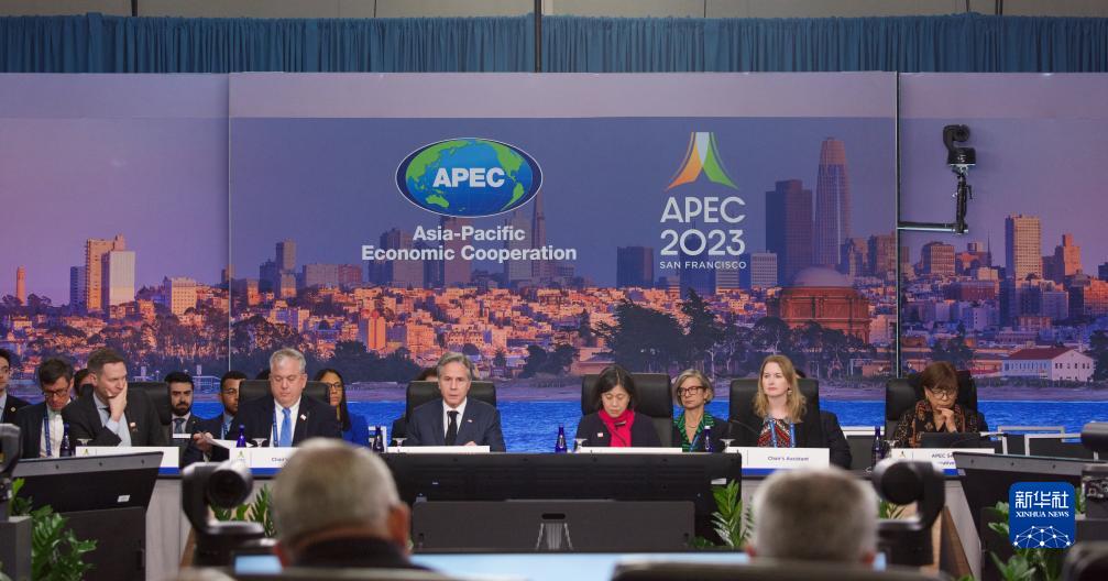 11月14日,美國國務(wù)卿布林肯(中左)和貿易代表戴琪(中右)共同主持在舊金山舉行的亞太經(jīng)合組織部長(cháng)級會(huì )議。