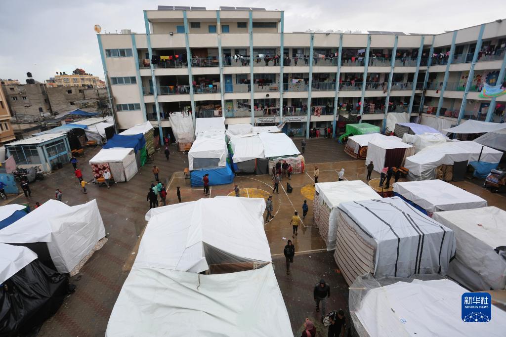 這是11月15日拍攝的位于加沙地帶南部城市拉法一所學(xué)校內的巴勒斯坦人臨時(shí)住所。