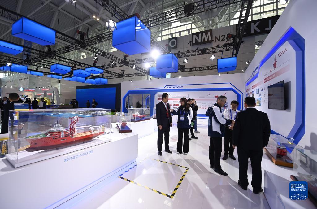 11月16日,參會(huì )嘉賓在2023天津國際航運產(chǎn)業(yè)博覽會(huì )海工裝備與船舶展區參觀(guān)交流。
