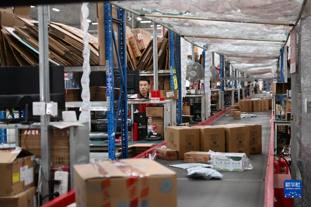 11月16日,在普洛斯唐山豐潤物流園,京東物流的工作人員在發(fā)送商品。