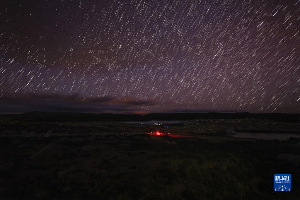 這是4月21日晚拍攝的星空下的高海拔宇宙線(xiàn)觀(guān)測站“拉索”(LHAASO)(合成照片)。