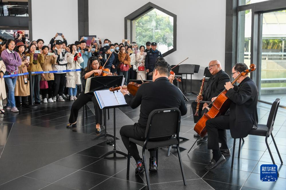 11月16日,費城交響樂(lè )團的演奏家們在蘇州博物館大廳內演奏。