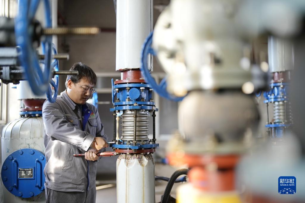 11月16日,唐山市豐潤區一家供熱企業(yè)工人在豐潤區第二中學(xué)供熱站內檢修供熱設備。