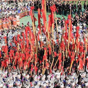 當日,貴州省黔東南苗族侗族自治州雷山縣迎來(lái)苗族同胞的傳統節日苗年。今年苗年又恰逢十三年一次的鼓藏節,歡樂(lè )氣氛格外濃烈。來(lái)自縣內外的數萬(wàn)名苗族群眾歡聚雷山縣城,通過(guò)盛裝巡游、非遺展示、千人長(cháng)桌宴等形式歡度節日。苗年和鼓藏節均為國家級非物質(zhì)文化遺產(chǎn)。
