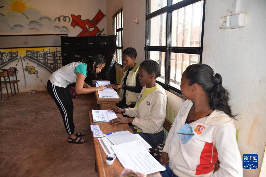 11月16日,在馬達加斯加首都塔那那利佛,民眾在投票站進(jìn)行投票。