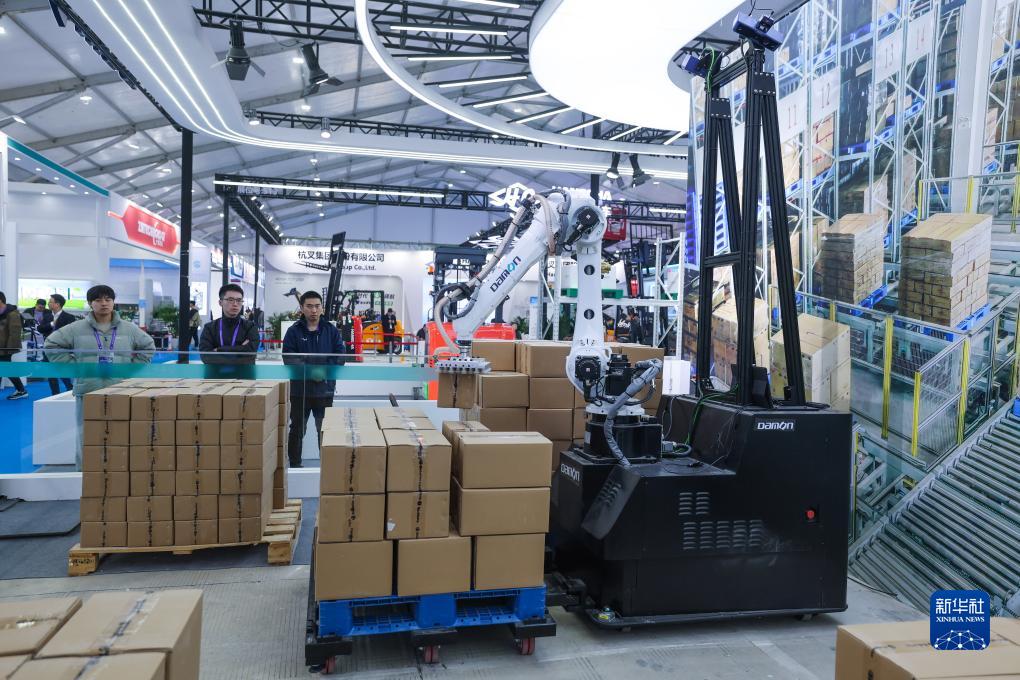 11月16日,中外客商在數智物流裝備產(chǎn)業(yè)展上觀(guān)看數智物流系統及設備。