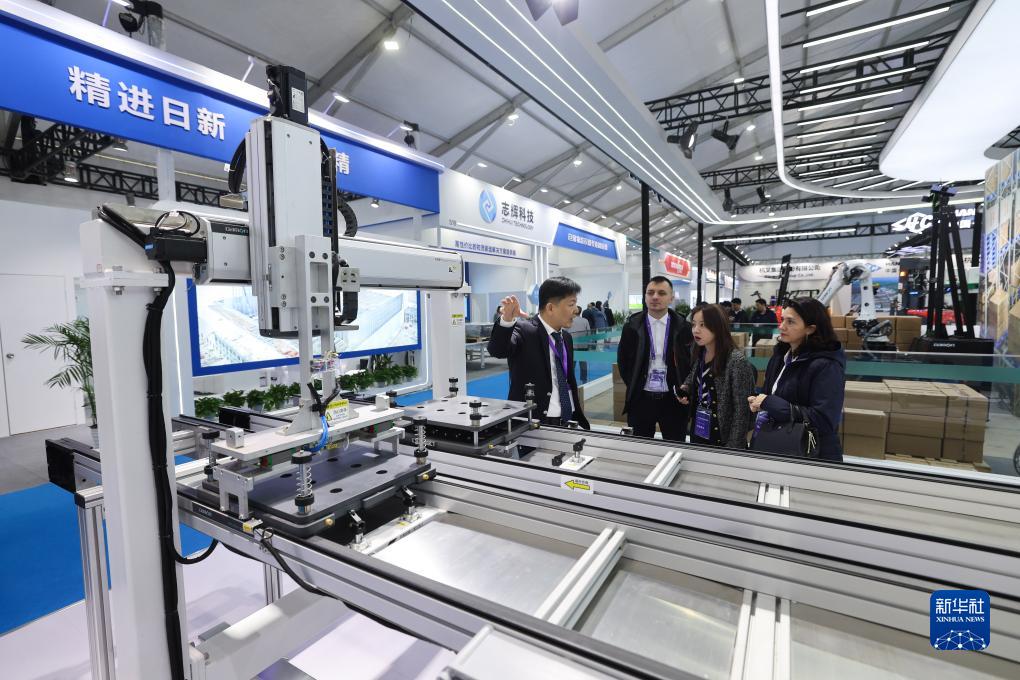 11月16日,中外客商在數智物流裝備產(chǎn)業(yè)展上觀(guān)看數智物流系統及設備。