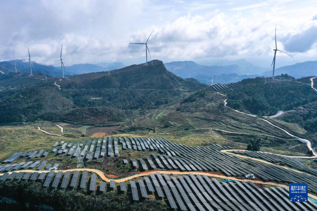 這是11月16日拍攝的貴州省石阡縣頂董坡風(fēng)電光伏項目(無(wú)人機照片)。