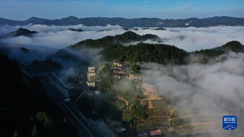 初冬時(shí)節,位于貴州省黔東南苗族侗族自治州雷山縣境內的雷公山國家森林公園,云霧繚繞,民居、梯田、公路、橋梁交相輝映,美不勝收,景色如畫(huà)。