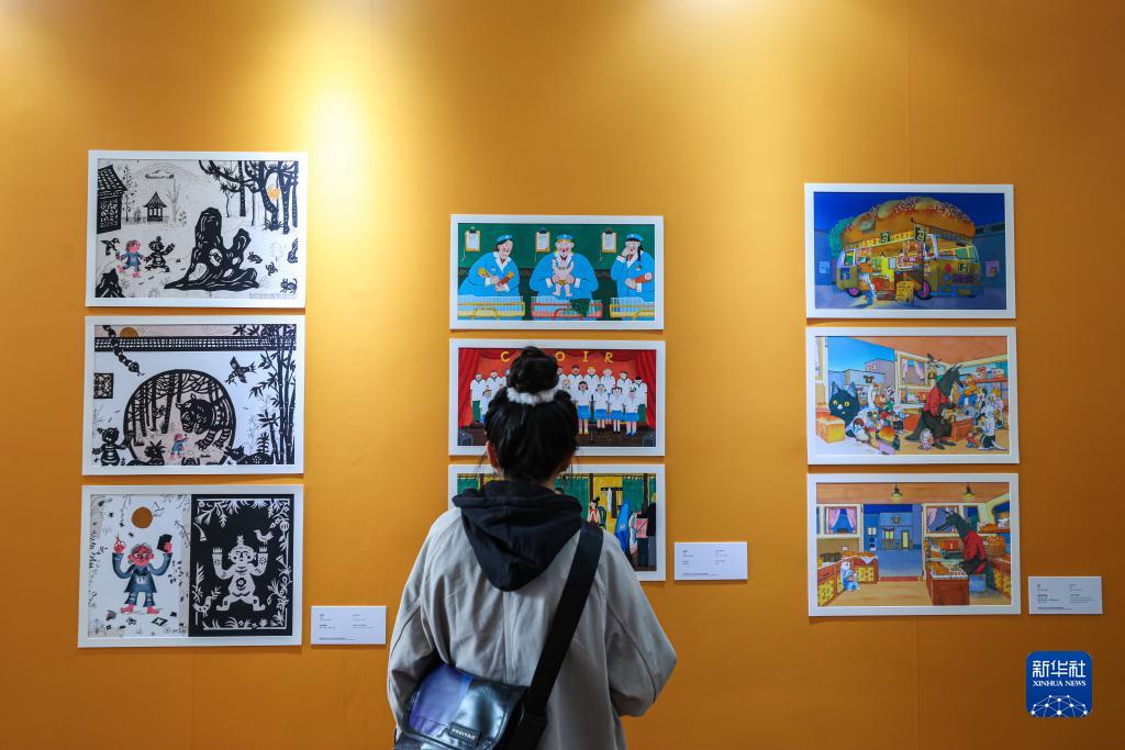 11月17日,參觀(guān)者在第十屆中國上海國際童書(shū)展現場(chǎng)觀(guān)看“2023金風(fēng)車(chē)國際青年插畫(huà)家大賽”參賽作品。