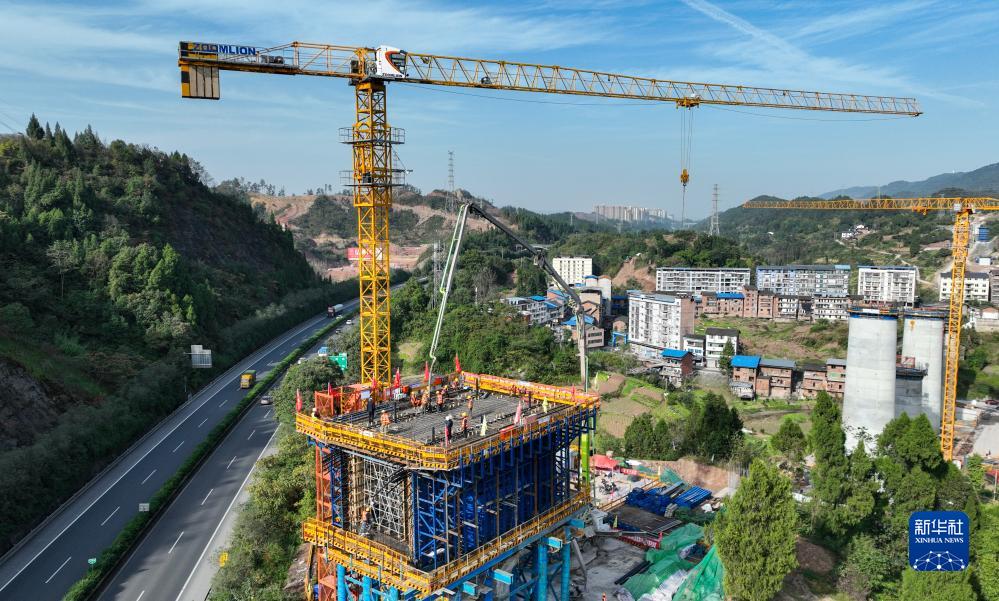 這是11月17日在四川省達州市境內拍攝的西渝高鐵檳郎特大橋連續梁施工現場(chǎng)(無(wú)人機照片)。