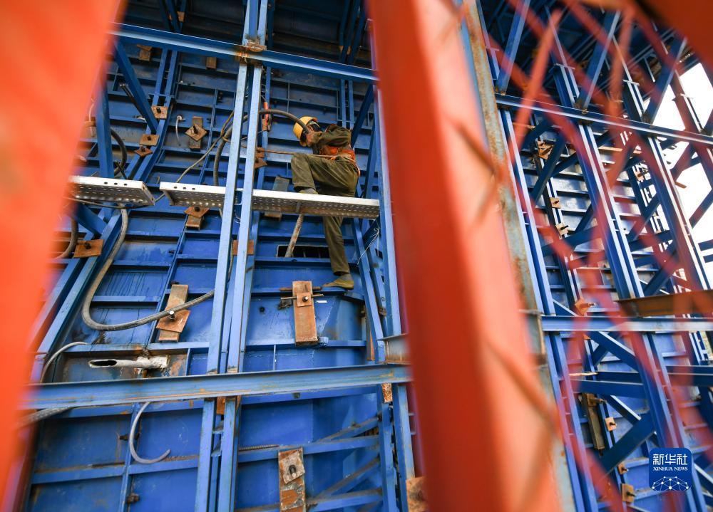 11月17日,工人在進(jìn)行混凝土澆筑作業(yè)。