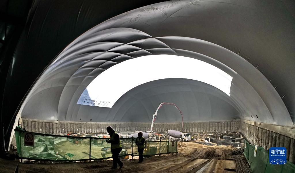 11月17日拍攝的“基坑氣膜”內部場(chǎng)景。