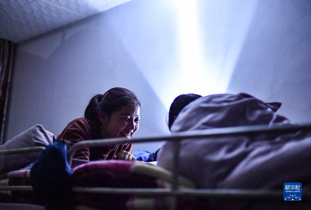 斯曲卓瑪(左)和舍友“夜談”(11月9日攝)。