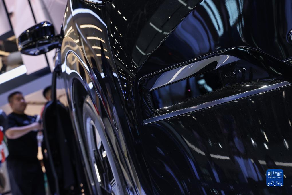 11月17日,廣州車(chē)展上一款自主品牌新能源車(chē)在車(chē)頭的激光雷達組件上標注了“LiDAR”(激光雷達)字樣。