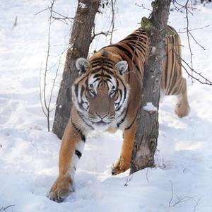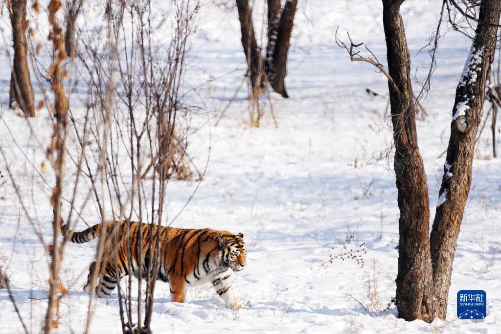 冰城哈爾濱市近日迎來(lái)數次降雪天氣,在黑龍江東北虎林園,散放區的東北虎在雪地活動(dòng)。