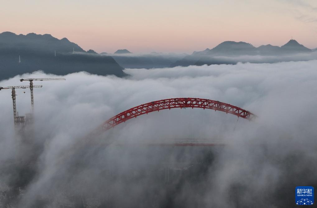 這是11月20日拍攝的建設中的溇水河特大橋(無(wú)人機照片)。