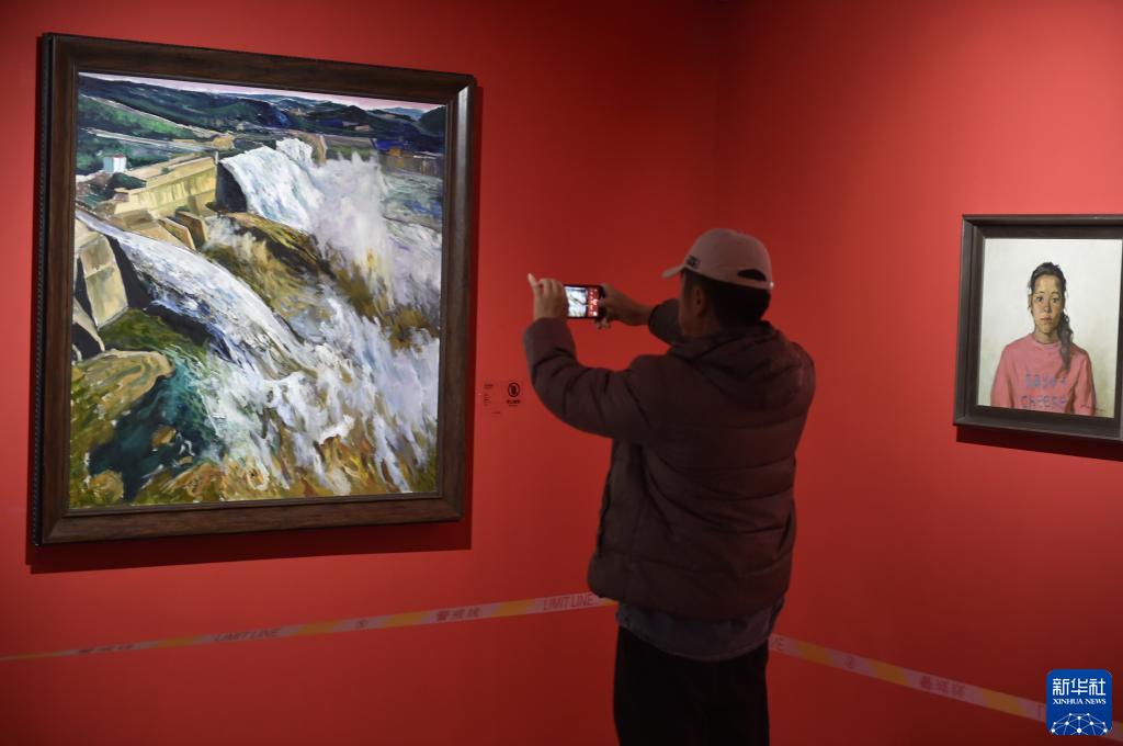 11月20日,觀(guān)眾在展覽現場(chǎng)參觀(guān)展出的作品。