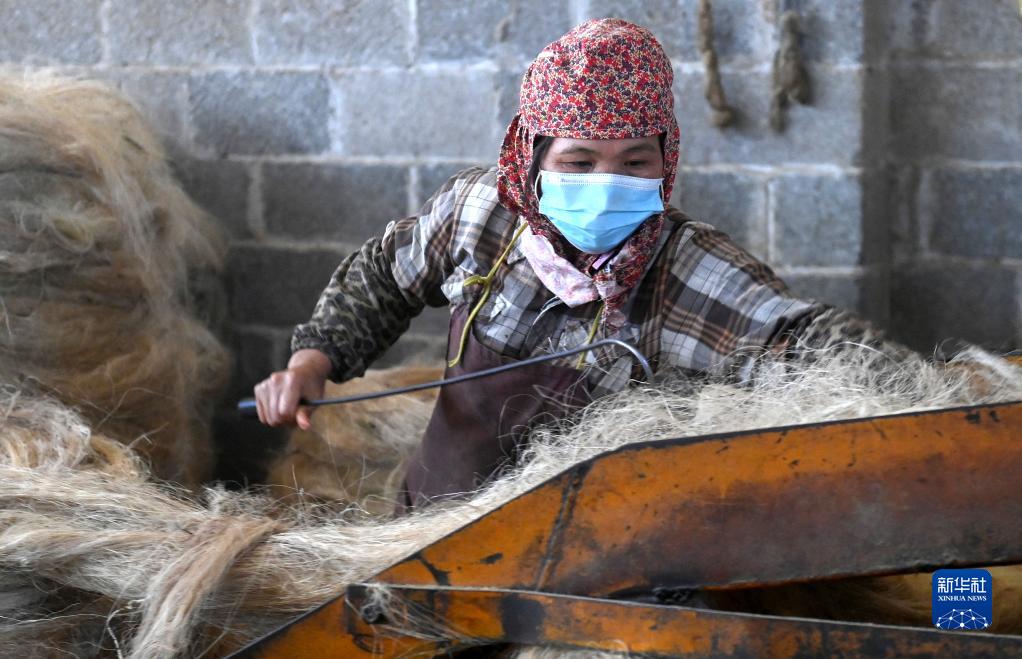 11月20日,在廣西平果市舊城鎮一家企業(yè),工人在加工劍麻產(chǎn)品。
