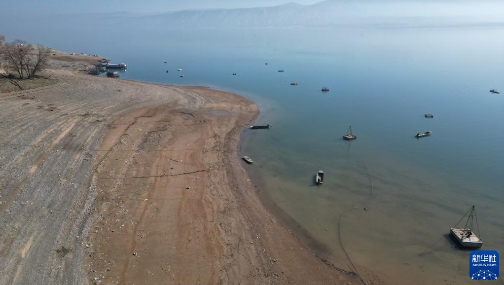 11月20日拍攝的大片河灘裸露的甘肅劉家峽水庫(無(wú)人機照片)。